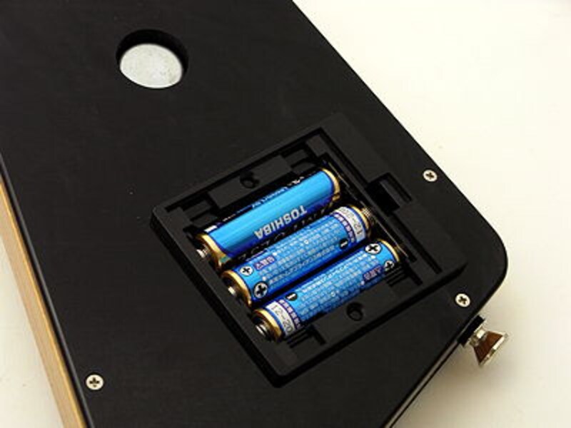 | 電源は単三乾電池3本。デジタルアンプなので電池は長時間も