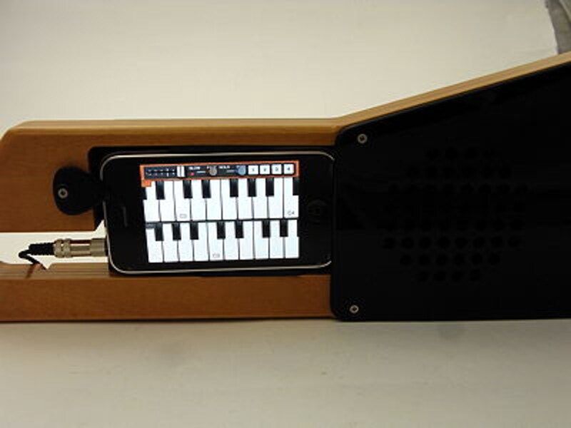 | ギター型のスピーカーだが、オルガンなどの鍵盤楽器アプリと の相性も良い |