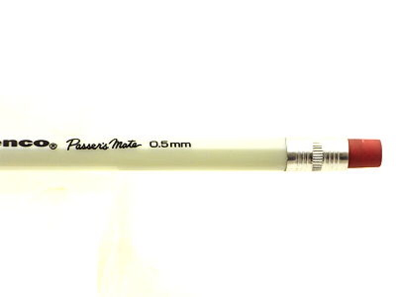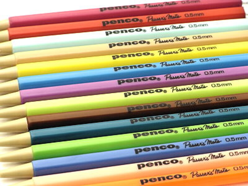 ヘッドのアルミ部分のチープさ加減も、鉛筆特有のかわいらしさがでています。ボディの形はもちろん六角形。そのため、プラスチック素材の軸でも持ちやすく 滑りにくいのです。まるで鉛筆のように。また、とても軽いので、長時間持っていても負担になりません。軸に書かれた《Passer's Mate=合格者》のロゴのとおり、試験勉強向きのペンといえるでしょう。しかし軽すぎるため、適度な重さが必要なペン回しには向いていません。実際に回したところ、回転し過ぎて掴めませんでした。