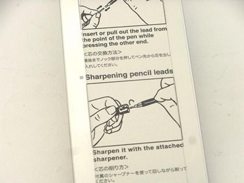 パッケージ裏のイラストも絶好調で、菅原さんも「好きでやってるから力が入る」と言うように、とても凝ったものになっています。また、軸が六角形で鉛筆のフィーリングで使えるのも良いですね。ちょっとだけ持ち重りがするのも、描線が安定するので描いていて良い感じです。芯の入れ替えは先端から行うので、ちょっと気を使うのですが、芯は折れにくいし、抜き差しもスムーズなので、慣れると素早く行えるようになります。芯だけでも525円で購入可能です。た だ、色のバラ売りがないのはちょっと残念です。
