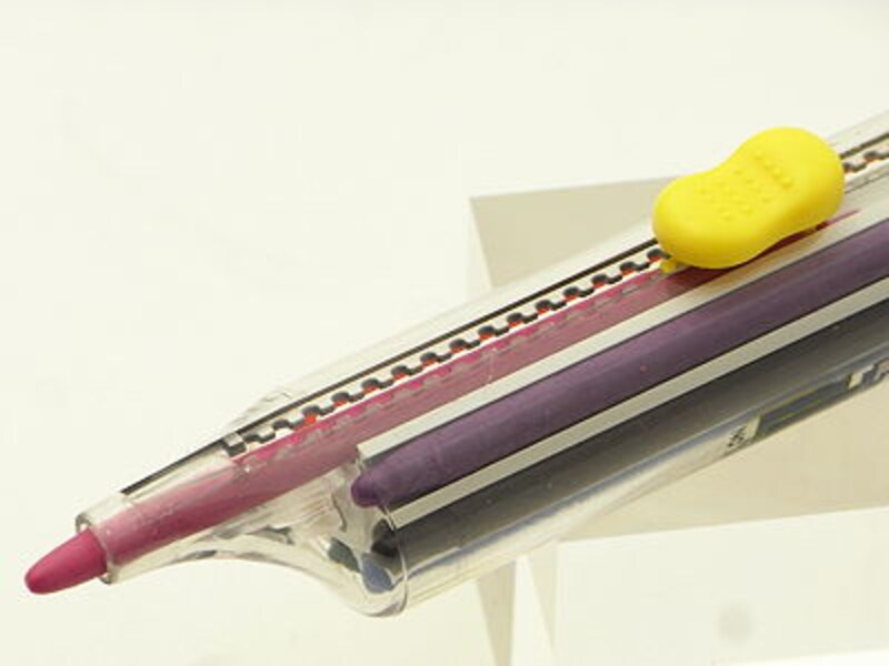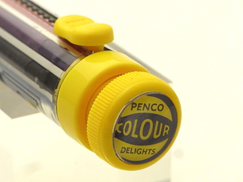 | 回転で色を選び、黄色のレバーで芯を繰り出す仕掛け |