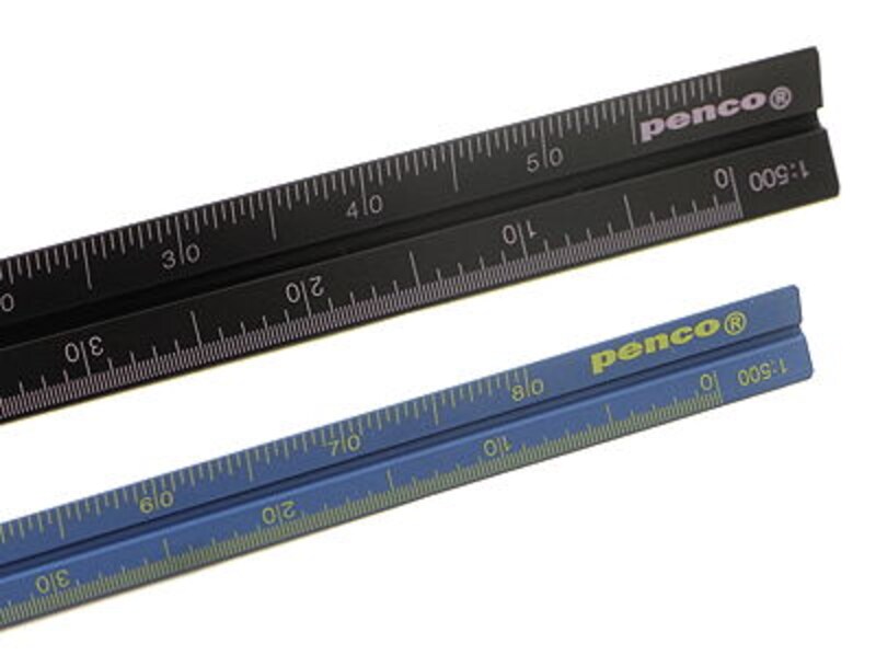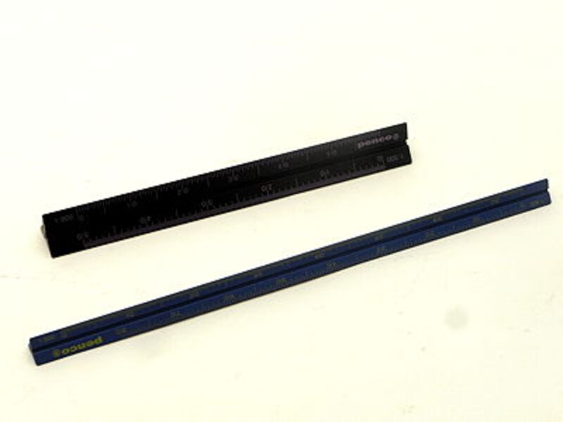 アルミ製なので、線を引く定規としても使えますし、長さを測る場合も、ノートの上などでは、押さえやすい三角のボディは普通の定規よりも使いやすいのです。文字色が鮮やかで読みやすいタイプから、目盛りもシックな色になっているタイプまで、趣味に合わせてカラーが選べるのも、この手のプロ用の製図用具に は無いことです。上手いところに目をつけたなあと思いました。