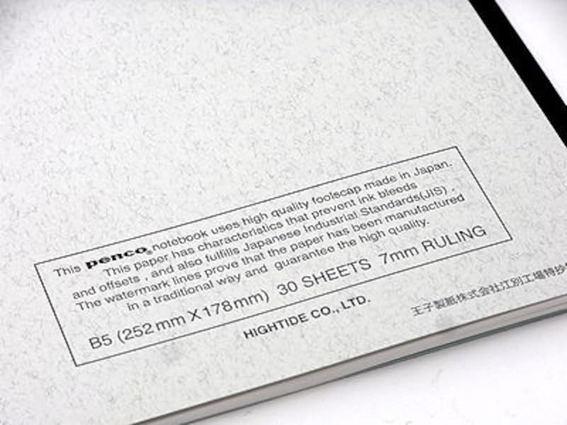「マルゴの大学ノートが大好きで、初めて手がけた文房具もノートで、ずっとやりたかったのが大学ノートなんです」という菅原さんの言葉通り、満を持して登場したPENCOの大学ノートは、その手頃な価格からは想像できないくらい、細部にまで工夫とこだわりが詰め込まれています。まずこだわったのは、その中紙。透かしが縦に入ったマルゴフールス紙を使用していて、その適度な滑りの良さは万年筆や鉛筆での筆記がとても心地よいものです。また、蛍光顔 料を使っていないため、目に優しい白さなのも、このノートの特徴になっています。