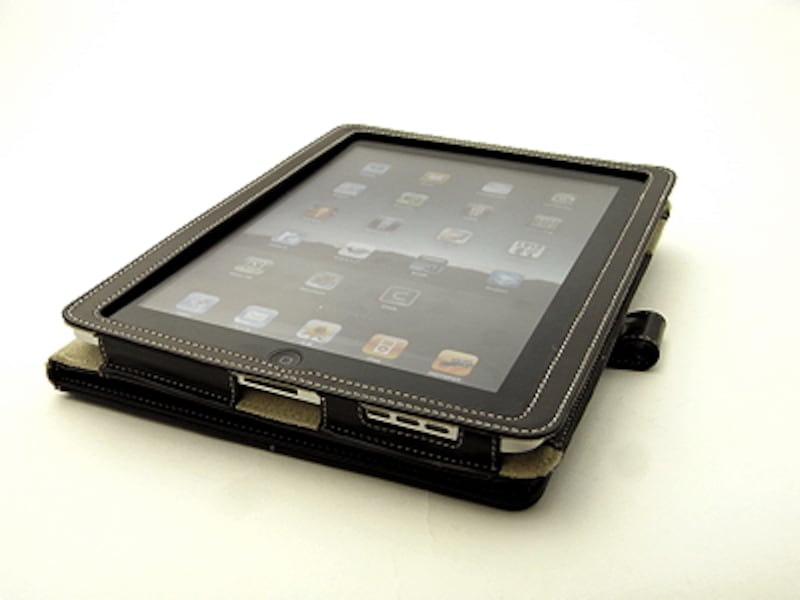 | Simplism「Flip Leather Case for iPad」5,980円(税込) カラーバリエーションは、写真のチョコレートブラックの他、ディープレッド、キャメル、スノーホワイトがある。 |