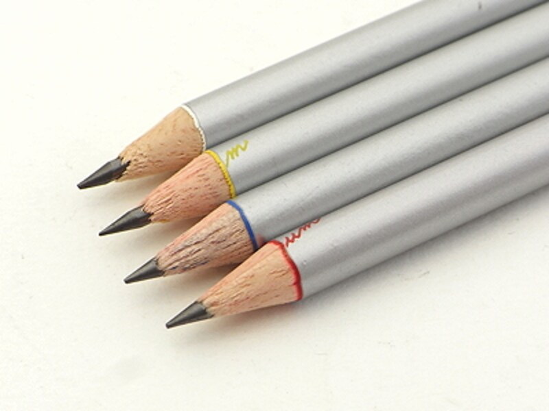 | 銀色に塗られた方を削ると、こんな風に下から色が現れる。芯の色は黒のみ |