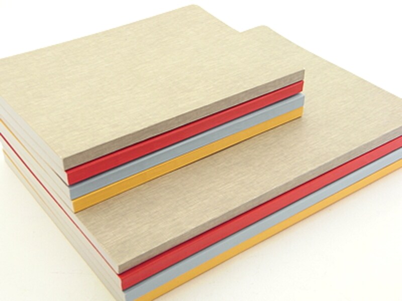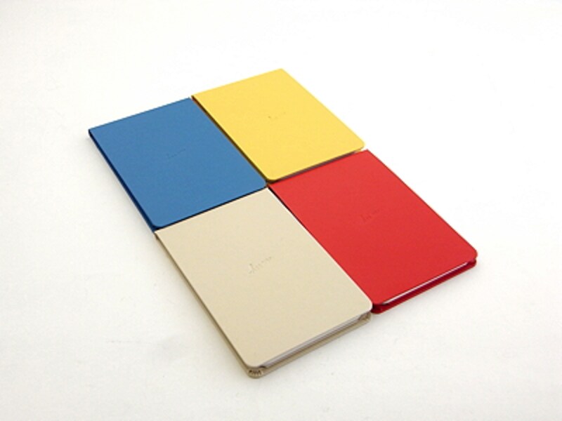 サイズはB5とB6の二種類。打ち合わせの時に机に広げて使う際の大きさの限界はB5だろう、という判断だそうです。中は3mm方眼。罫線に縛られず、絵 を描く際にはガイドにもなるという理由で決めたのだそうだ。角丸でシンプルな外装は、グレイ、レッド、イエロー、ブルーの四色展開。ここまでシンプルなデザインのノートも珍しくて、そのせいか、使っていると、まるで自分専用のノートのように思えてくるのが不思議な感じでした。また、端を折るのが前提になっているという使い心地は、慣れると、ページ間を有機的に繋ぐような感覚で使えて、アイディア同士が思わぬ結び付きを見せてくれる事もありました。