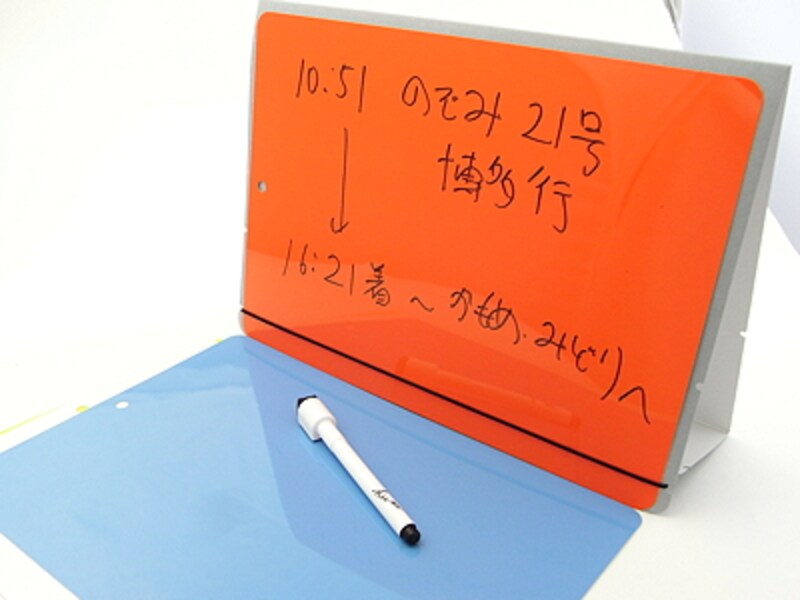 | ファイルフォルダ部分を組み立てると、ホワイトボードを立てるスタンドにもなる |