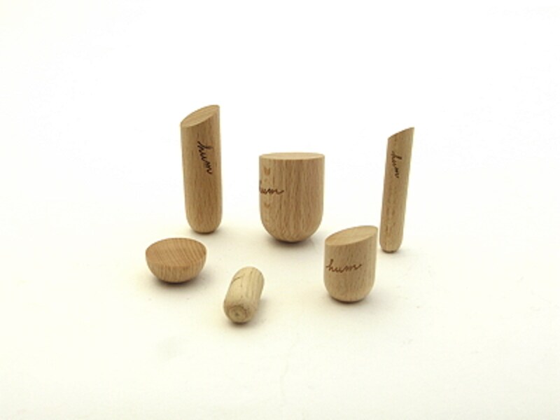ただ、こんな楽しい形のマグネットはあまりないし、この、ちょっと指を思わせる形が紙を留めている感じは、何とも楽しいムードがあります。実際、紙を指で押さえているようなイメージでデザインしたのだそうです。タイトルの6も、六本目の指として使える道具が6個セットになっている、という意味で付けられています。また、木の中にマグネットを埋め込んで作っているので、磁力の調整にとても苦労したそうです。使ってみると、紙を留めたり、素早く外したりといった使い勝手がとてもよく、その調整の見事さに感心してしまいました。コロコロと指先で触っているだけでも気持ちよく、アイディア出しの際にも役立つはずです。角丸のメモ帳「pocket note」を留めるツールとしてのデザインバランスも抜群です。
