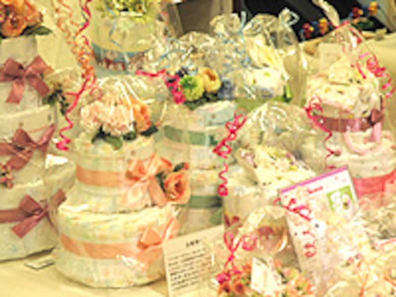 | すべて銀座ハンズモデルとして用意された「ベイビーズ・ファースト・ケーキ」。紙おむつとは思えません |