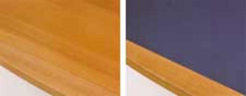 天板がリバーシブルになっているのが心憎いデスク。表裏が木目面と青いリノリウム面の2面になっています。子供が小さな頃は、おもちゃや鉛筆、カッターで傷をつけたりシールを貼ったりと、何かとデスクに傷をつけやすいですよね。そういう幼児~学童期はリノリウム面、落ち着いて勉強する頃には木目の天板を使えます。