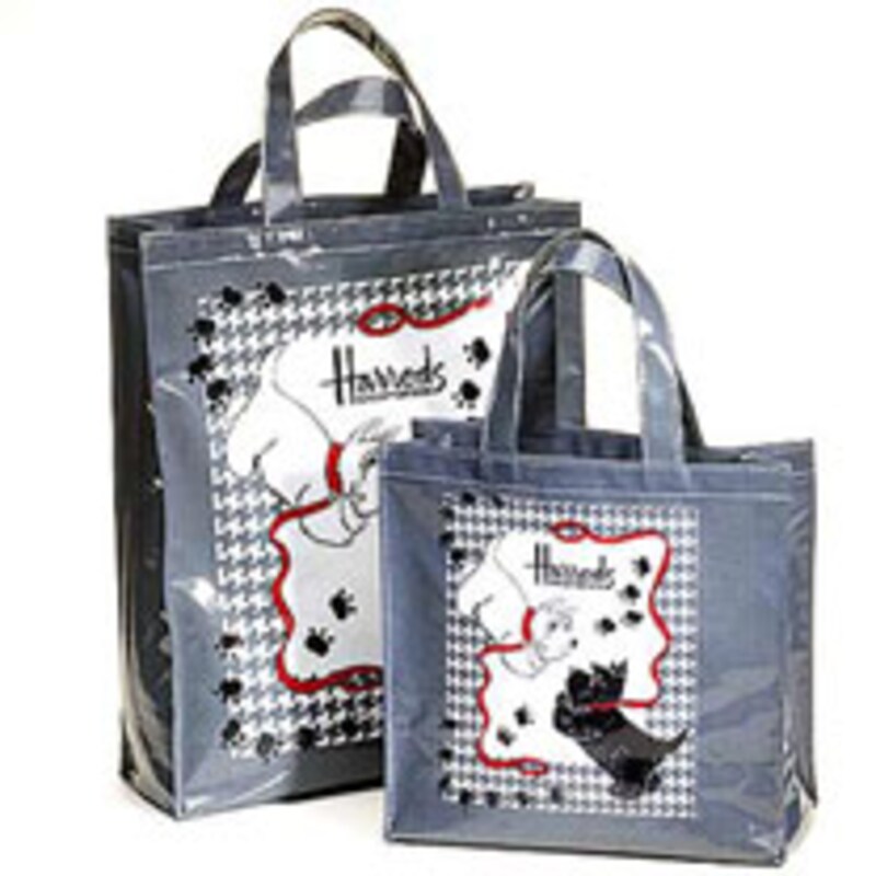 そして、国内ではデパートの三越のみで取り扱われている「ハロッズ」のビニール加工バッグ。毎シーズン、次々と新しいデザインが発表されるので、仕事を持つ女性にも大人気。ママは学校行事用には黒っぽいデザインを選ぶ人が多いのですが、花柄やテディベア柄(ハロッズベアという)、テリア柄など、かなりカラフルなものもあって、子供にはそちらの方が人気があります。キタムラのものよりも更に一回り大きく、高さもマチもかなりゆったりしているので、ラージサイズには子供のお道具箱がすっぽり入ってしまうのも魅力です。