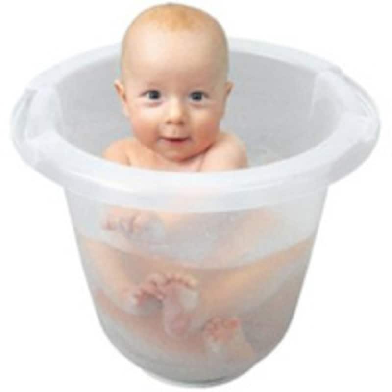 最近はベビーバスも進化して、空気で膨らませて使うビニール製バスやグッドデザイン賞受賞の安定性の高いもの、そしてドイツから来たバケツ状のもの(下記参照)まで登場しています。