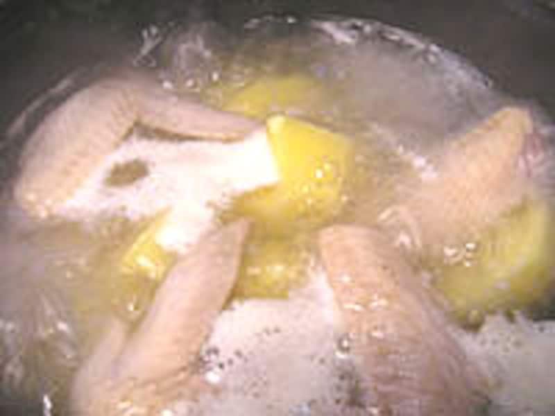 最後に、一つの鍋で今まで紹介した栄養素すべてを摂取できるレシピをご紹介します。このレシピ、これからの季節にむけて風邪対策にもなり、またお母様にはアンチエイジングを兼ねた美肌メニューにもなりますので、ぜひ作ってみてください。鶏とじゃがいものスープ煮 材料(4人分)