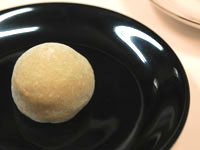 | (上)外国から伝わることで始まった和菓子の文化がめぐりめぐって、外国の文化と調和されグローバルなお菓子へと進化する時代に。これはチョコレートと小豆をあわせた「霞」 (下)卵の黄身と白餡をあわせて作る黄身餡に北海道バターをあわせた「樹」(写真提供 閑且雅) |