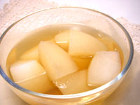 食養生というと中国の薬膳が有名ですが、韓国薬膳も長く深い文化があります。特に韓国では梨はデザートだけでなく、料理の甘味としても多用されています。みなさんの中にも冷麺がお好きな方がいらっしゃると思いますが、冷麺にも梨(リンゴの場合もあり)が入っていますね。他に韓国の伝統茶(果物を甘く煮たもので作られているものが多い)にも梨は使われています。今でも日本人にくらべて梨の消費量がとても多いという韓国。お隣の国の文化から、今回は宮廷で愛された梨のデザートをご紹介しますね。冷たく冷やしてそのまま食べても、ヨーグルトなどに混ぜても美味しいですよ。他に、アイスクリームやこのコンポートを使ってタルトにしてみるのもオススメです。