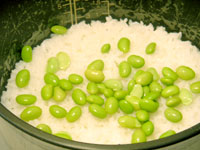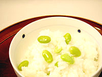 お米を炊き込むための茹で汁は、塩分を極力抑えることがおいしく作るポイントです。茹で汁でご飯を炊くことで、風味と茹で汁に溶け出た栄養分も全て含んだご飯を食べることができます。枝豆に火を通しすぎなければ、豆の色がきれいな枝豆ご飯をつくることができます。