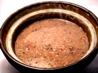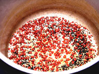 | 今回のお粥に使った小豆・紅麹・黒ごまには共通点が。それは皮の色に含まれるポリフェノール。体を酸化させる活性酸素を除去してくれる強い味方 |