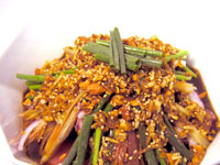 ドレッシングは、ゴマ油以外の材料で作ったものを先に鰹にかけ、最後に熱したごま油をかけてもGood。炙っていない鰹を買ってきた場合は、その方が風味が増していいかもしれません。