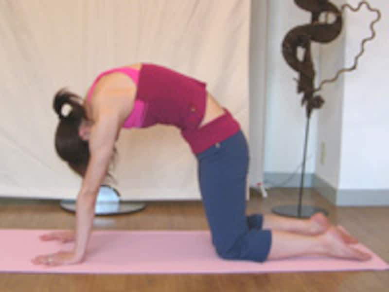 コブラのポーズで背中を反らせた後は、ネコのポーズで自律神経の通っている背骨をストレッチし、上半身の緊張を解きほぐします。![]() |