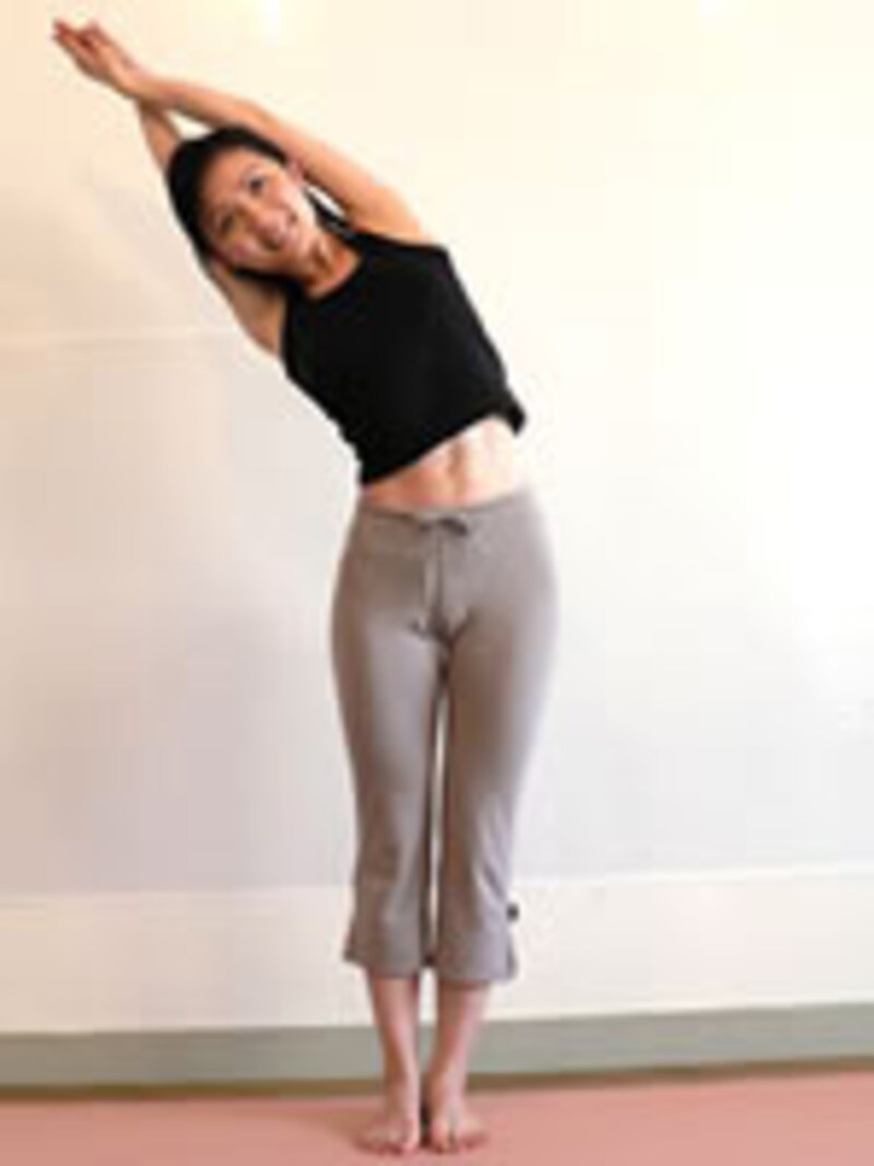 眠気も覚め、徐々に体がほぐれてきたところで、全身の筋肉を引き伸ばしていきます。それには、三日月のポーズが最適。内臓も引き伸ばされれば、一日中元気で快適に過ごせます!![]() |