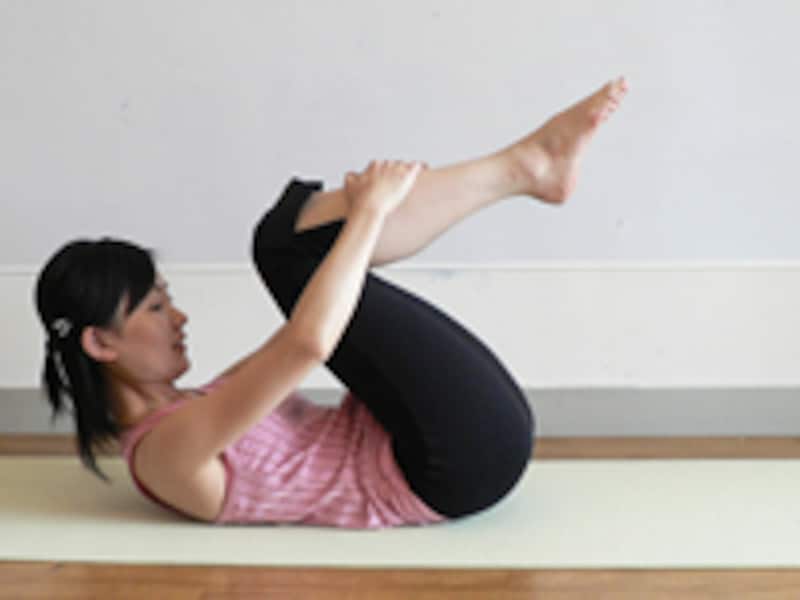 背骨を一つ一つマットにつけるように転がり、頭まで転がらないよう注意!