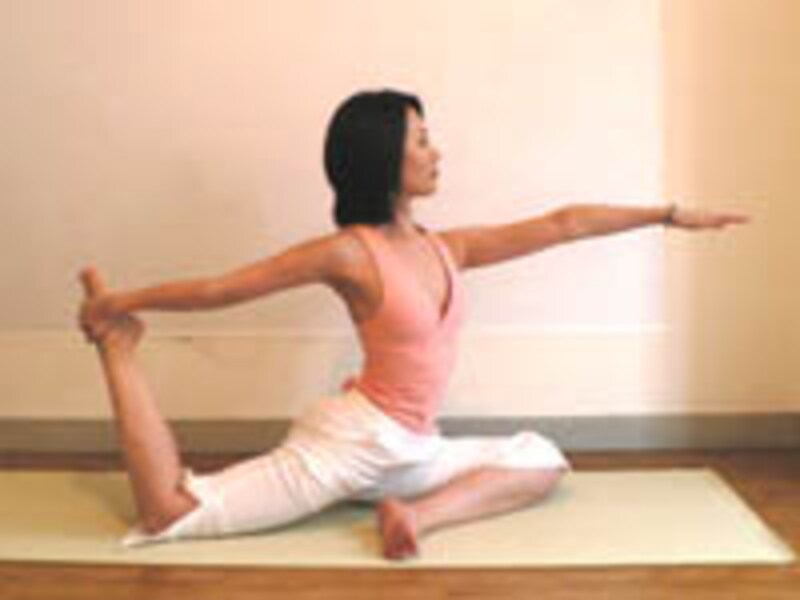 (4)呼吸を終えたら左手を下ろし、右足を下ろす。