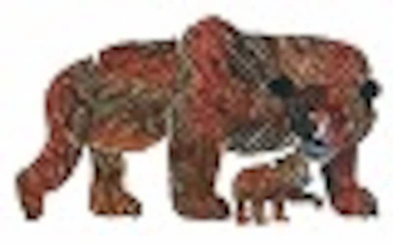 | お母さんのそばにいるこぐまくんはまわりに興味津々です。コグマから視点が次々に変わります。最初にお母さんのそばでふと顔を上げる場面です。「こぐまくん こぐまくん なにみているの?」原画2007年copyright©2007 by Eric Carle |