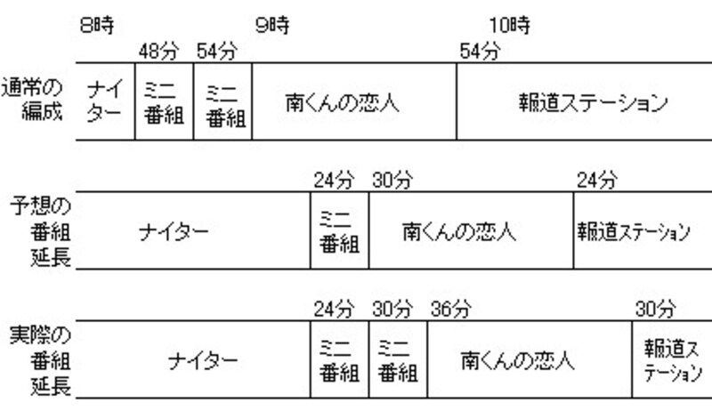 特にテレビ朝日系木曜ドラマについては間違いない!!っと思わず長井秀和になってしまいました。8月5日木曜、テレビ朝日系のナイター『ヤクルト×巨人戦』。次の『南くんの恋人』を見るために午後9時前からちらちらみていましが、同点でなかなか終わりそうにない。「これは最大延長30分だな」と判断し、10時からは『人間の証明』と『バツ彼』があるしこれはビデオに録っておこう、と午後9時30分から10時24分までビデオをセットし入浴。さて、後になってビデオを見ようとするとどうもおかしい、最初から始まってない。早送りしてみると最後が録画できずに切れている。細かく見てみるとどうも午後9時36分から10時30分の放送だったらしい。なんじゃこりゃ、と思いつつ新聞のテレビ欄を見返してみる。たしかに「最大延長9:24まで、以降の番組は繰り下げ」と間違いなく書いてある。しかーし、テレビ欄をよーく見ていて気がついた。延長がない場合のナイターの終了時間は8:48でした。したがって延長時間はたしかに36分なのです。なんとミニ番組が二つ!なんでこんなことになっているのか?ナイター中継の後、なんと6分のミニ番組が二つ入っていたのです。東京のテレビ朝日では『ナイター続報』と通常8時54分の『modern living』ですが、他の系列局を見ると通常は午後7時54分からのミニ番組と8時54分からのミニ番組の二本立てなのでした。と、いうことでテレビ朝日も新聞のテレビ欄もたしかに間違いやウソをついているわけではありませんが…「そんなこと読みとれるか!」ガイドがテレビ欄をまともに読めないマヌケでないことを証明するべく8月5日の『南くんの恋人』の感想を書いたものをインターネットで検索しましたが「新聞発表よりもっと時間が遅くなっていた」「なんで36分?」「ここが縁の切れ目ですね…」などみなさん予期せぬ事態だったようです。ナイター中継対応DVDレコーダー今回は特に変わった事態でしたけど、いつもナイターシーズンには日本のどこかで同じようなことが繰り広げられる悲劇であります。これを改善する方法はないのか?それがあるんです。ソニーのDVDレコーダー・スゴ録、RDR-HX10、RDR-HX8、RDR-HX6に搭載される「野球延長対応」機能です。ポイントは電子番組表(EPG)の利用。録画した番組の前にナイターで野球、またはサッカーの放送がある場合には最大延長時間を読みとって自動的に録画設定の終了時間を加えてくれるというもの。今回のような場合、10時から『人間の証明』または『バツ彼』を録画したいとか、試合終了まで放送という場合には対応してくれませんが、それでもこれで救われることは多そうです。【編集部おすすめの購入サイト】Amazonでドラマの DVD をチェック!楽天市場でドラマの CD・DVD をチェック!※記事内容は執筆時点のものです。最新の内容をご確認ください。