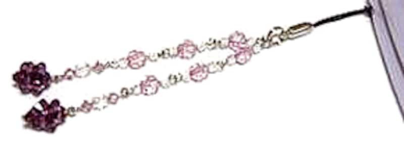 | 「ぶきっちょな私にも作れそう!」と真っ先に思ったのがこのストラップ。 同じ物を自分用に作るのも、いいと思いません? 短くしてピアスやイヤリングにしても可愛いでしょう。 |