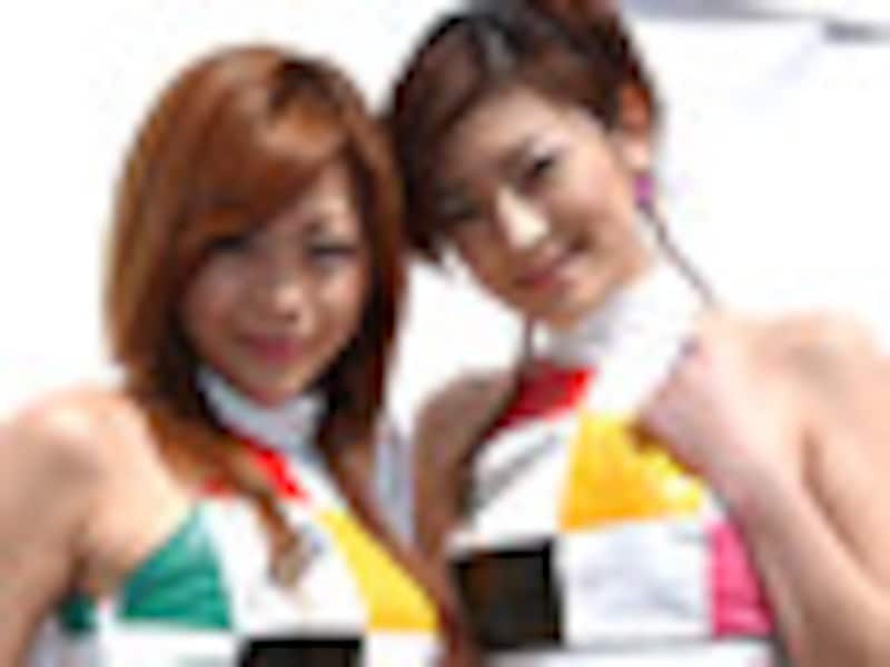 青井絵理香・古里真里(PLUS e レースクイーン) |