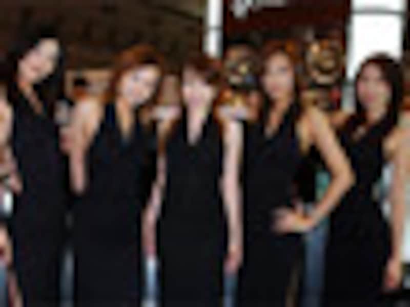 aondmirationadmiration ブースから橋本知子・若菜香里・梶原優・日比野しほり・小館裕子ちゃんのギャラリーです。イイおんな系の5人が黒のスリットドレスで集合。背中まるあきのドレスは超セクシー!です。 |