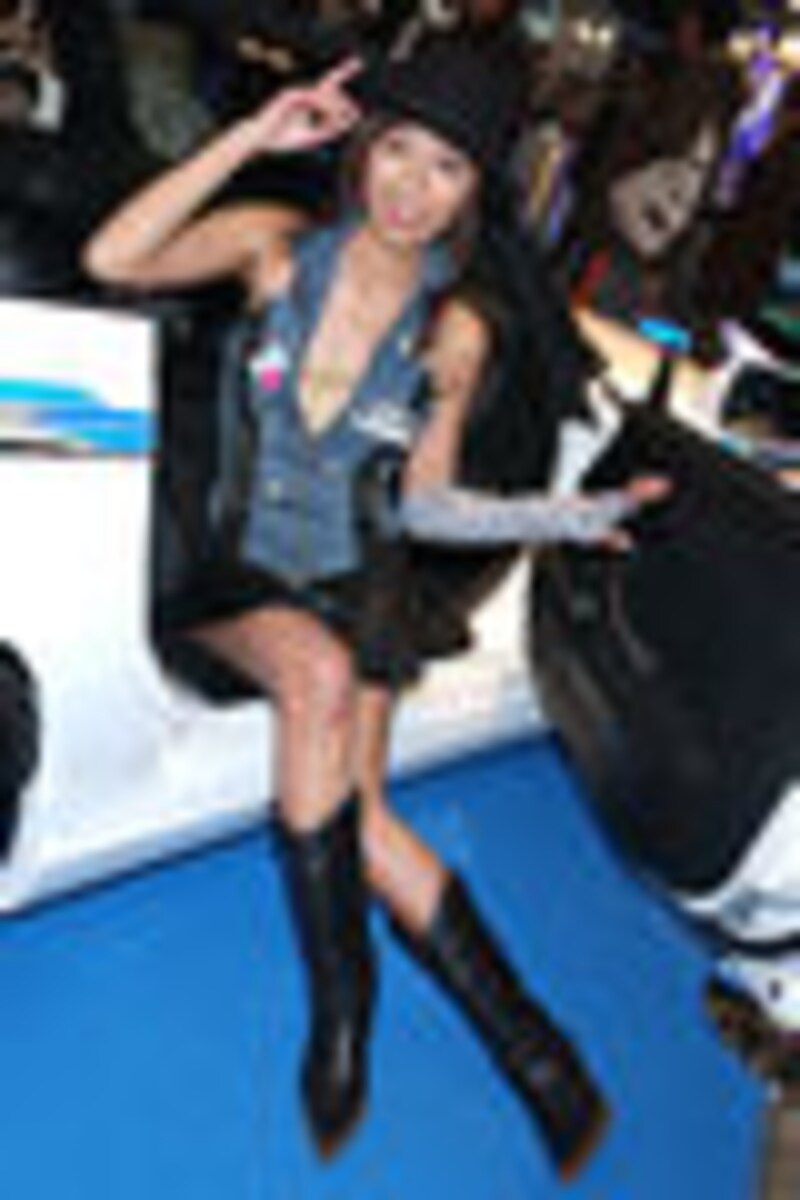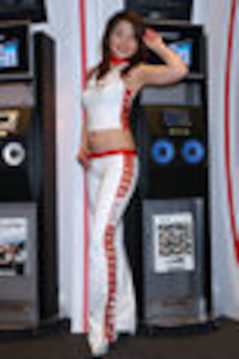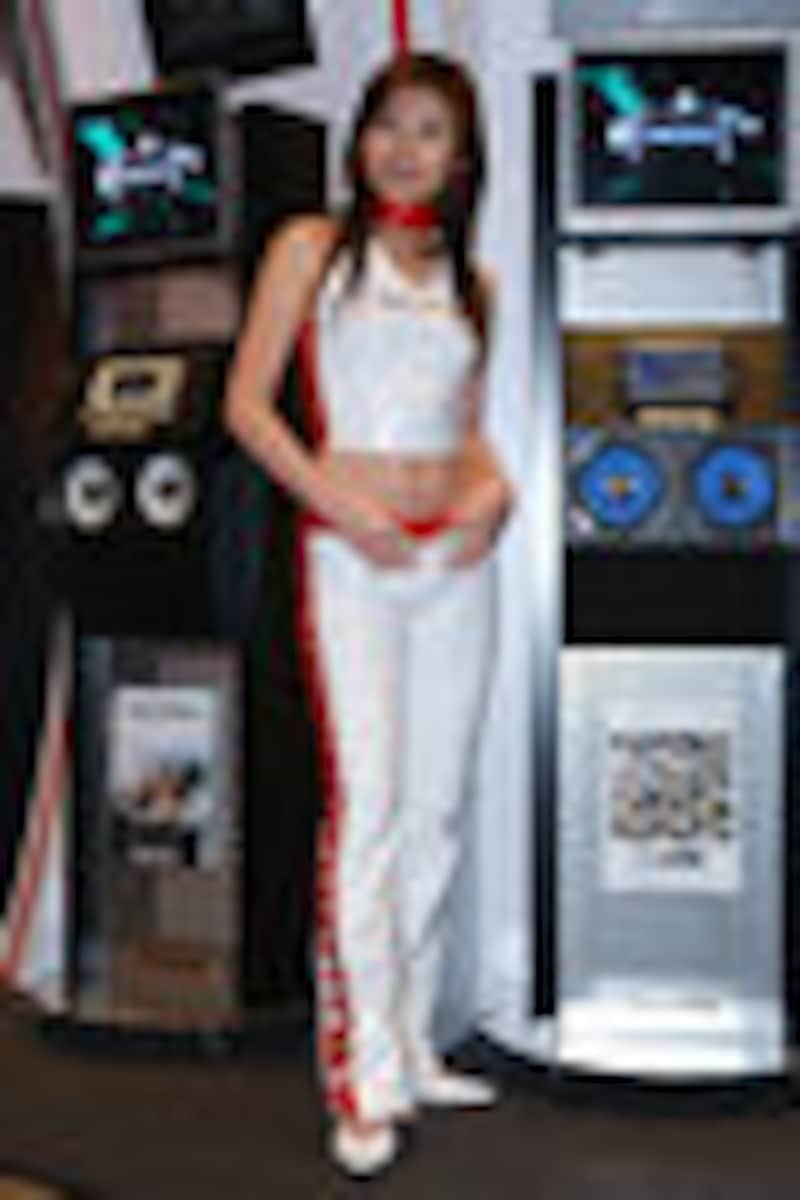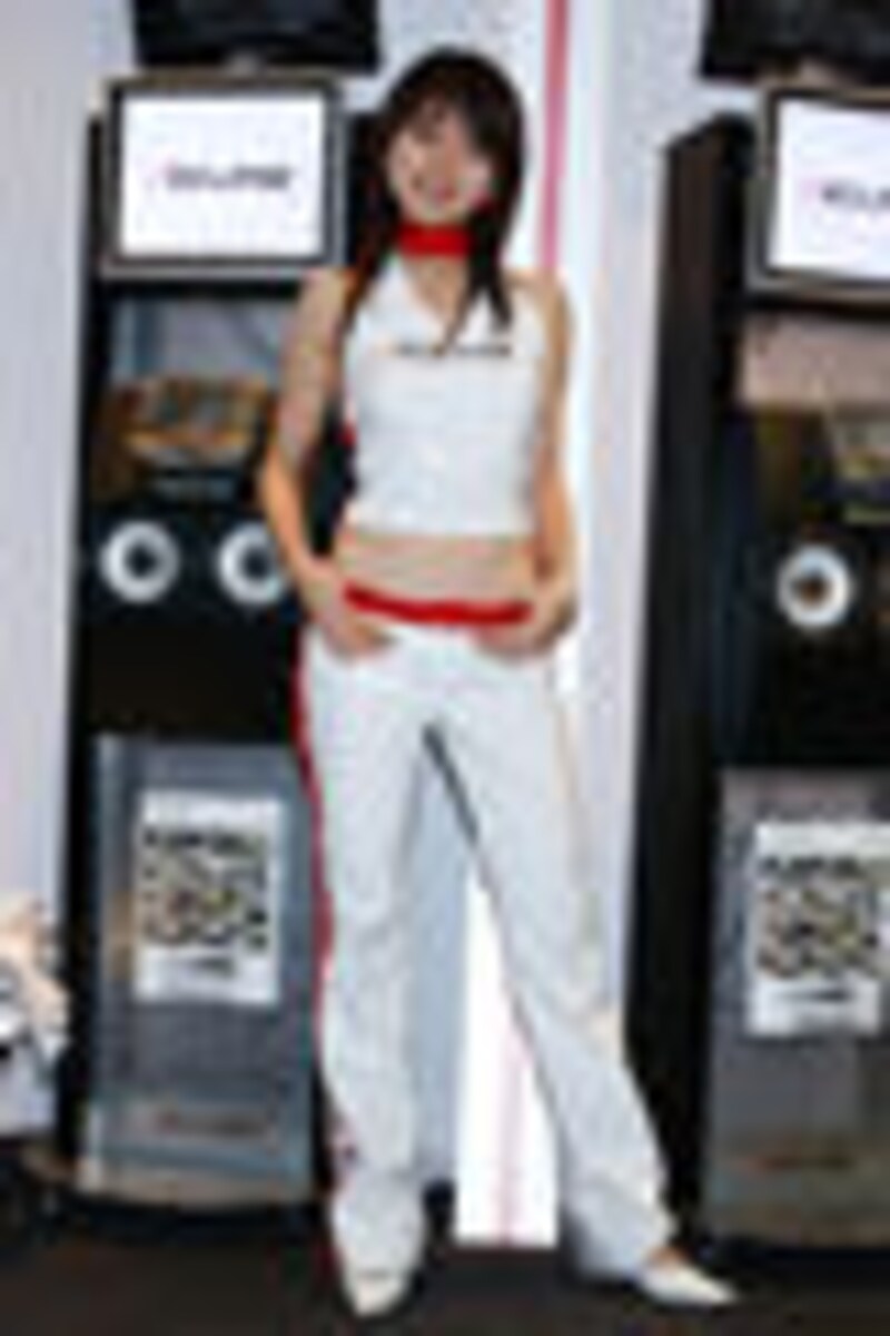 サーキットのコスチュームそのままに登場してくれた「ECLIPSE Lady」の3名。今年のレースは本当に天候に泣かされたので、今回の取材で初めてまともに撮影できたような気がします。ブース内にはマシンと一緒に彼女達の特設ステージも組まれていましたが、常にファンが最前列を場所取りしているなど、人気のほどを伺わせていました。サスガですな。