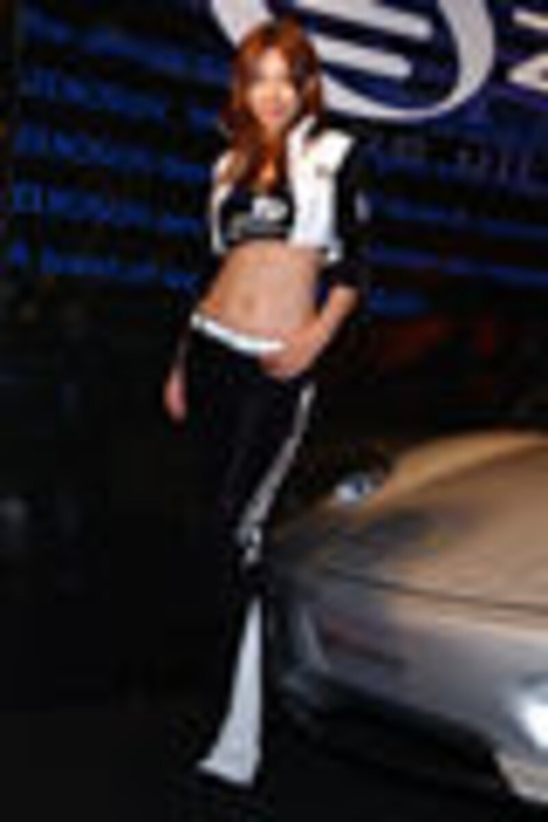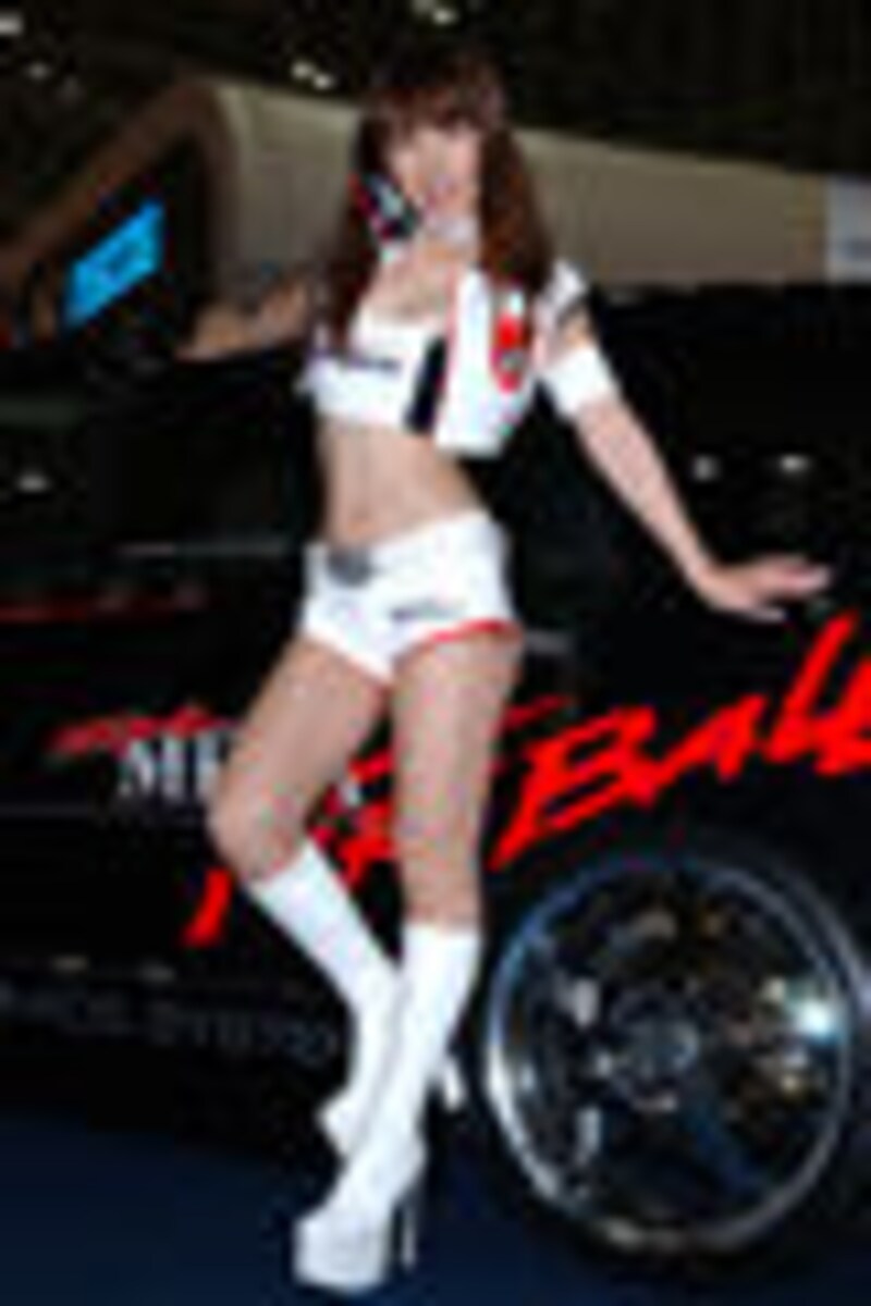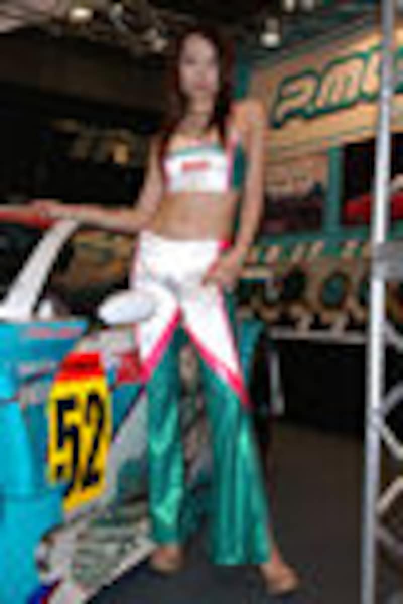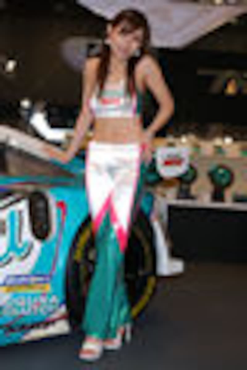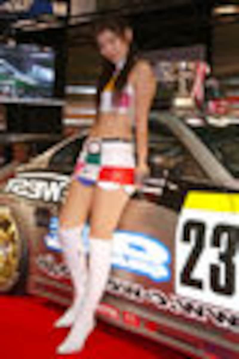 「プロジェクト・ミュー」のブースは04年のコスチュームの女の子たちがズラリ。但し、サーキットのメンバーとは違うレースクイーンたち。個人的に岡千織ちゃんだけ初取材でしたが、なんと現役高校生とか。その割りに一番セクシーポーズ取ってたんですけど・・・。最近の若い娘はコワイワ。