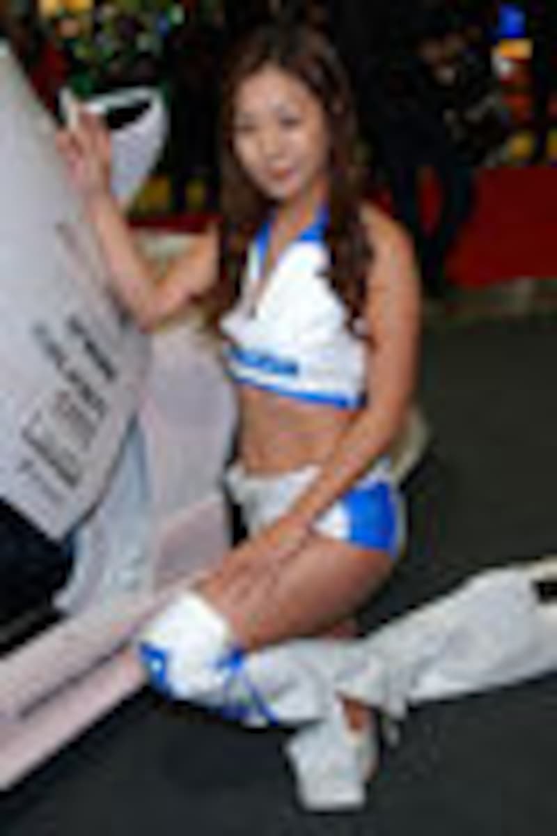 ORCブースでは05年のメンバーがコスチューム姿で登場。横部実佳ちゃんと、墨屋真奈美ちゃんのお2人が昨年からの継続組。後の5名は今年の新メンバーです。コスチュームは昨年のものを踏襲した感じですが、スカートバージョン・ショートパンツバージョン・カウガールバージョンと3パターンあるんですね。05年もGTやS耐を彩ってくれる事でしょう。