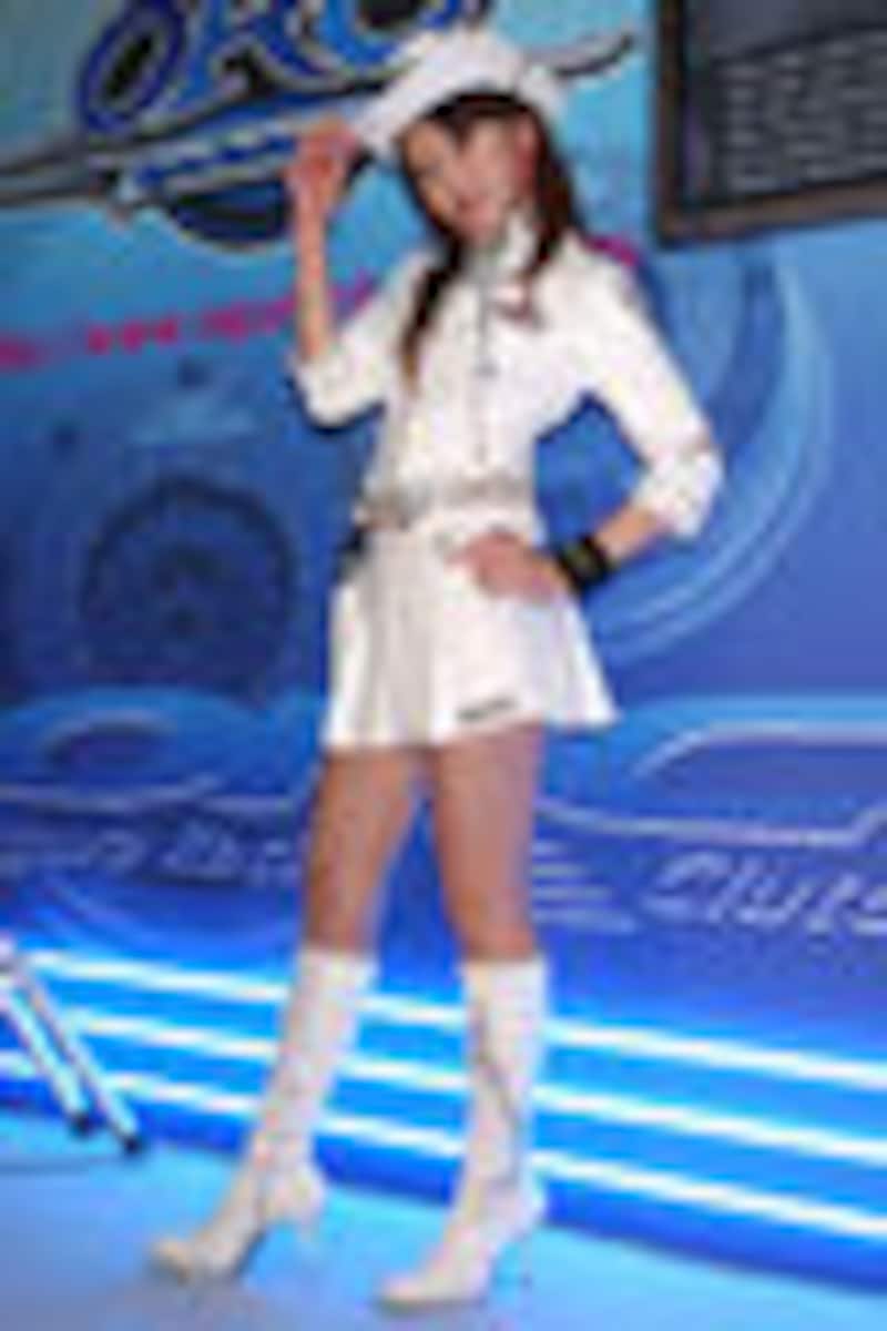 本館から少し離れたイベントホールで富士スピードウェイのブースを発見!昨年1年間、修復工事のため使用できませんでしたが、来る4月10日よりリニューアルオープン。レースクイーンとして真川愛ちゃんと村岡夕実ちゃんが、サーキットでファンの皆さんを迎えてくれる事になりました。今回はコスチューム姿を一足早く大公開です!