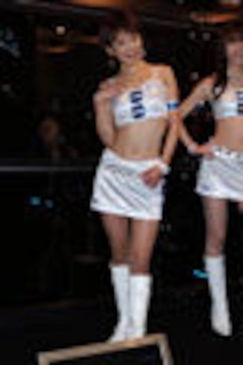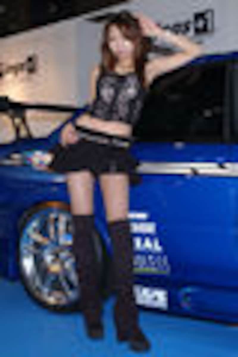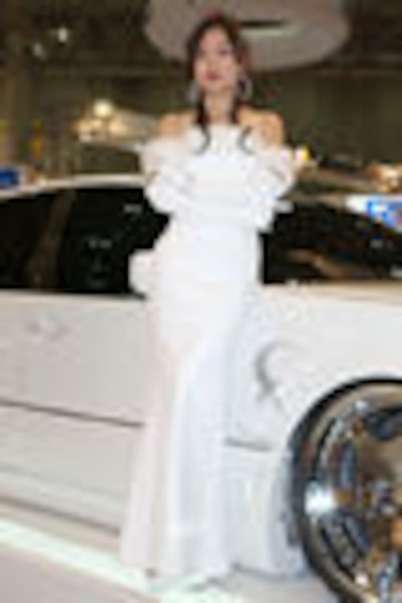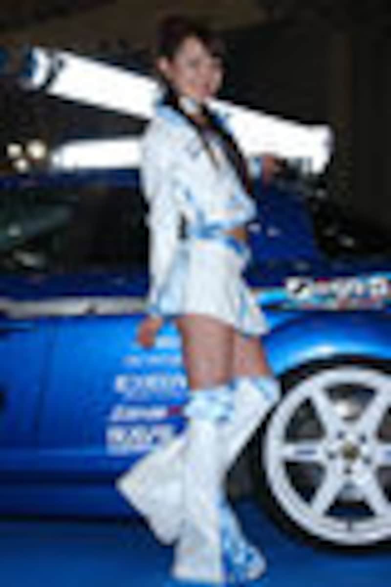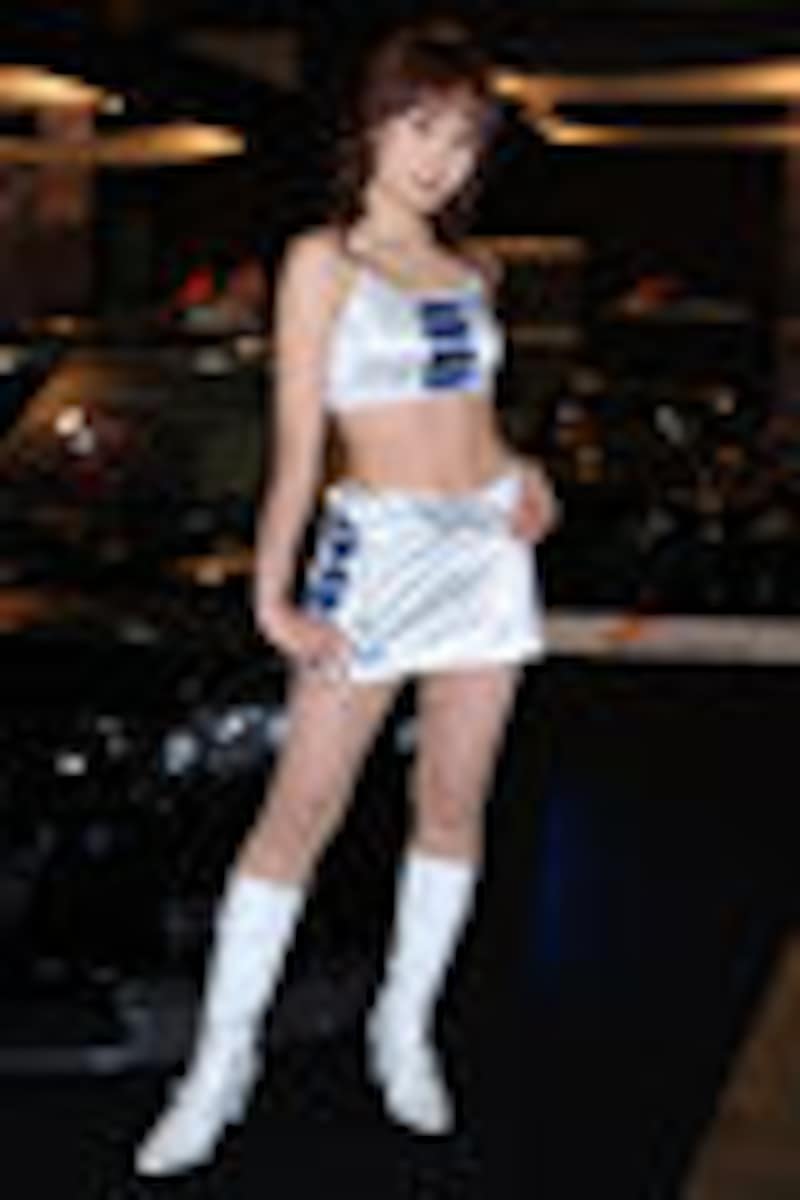 ひときわブルジョアなドレスで登場した麻生円ちゃん。サーキットでは笑顔満点の彼女ですが、今回は気高くクールに決めてくれました。SUNOCOのお二人はともに座りポーズ。スリットが結構、際どかったりして。