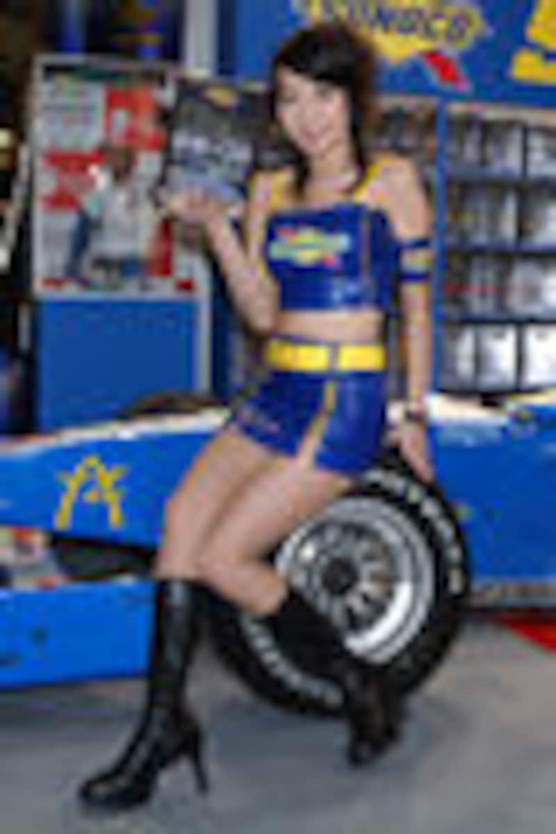 GT選手権は国内のみならず、マレーシアをはじめとした海外サーキットでもレースを行っています。その海外ラウンドのイメージガールが「紅-KURENAI」の3人。正式なコスチュームは赤のレザーですが、今回はステージ衣装で撮影させて貰いました。このメンバーでは、オートサロンが最後のステージになるというウサワも・・・。