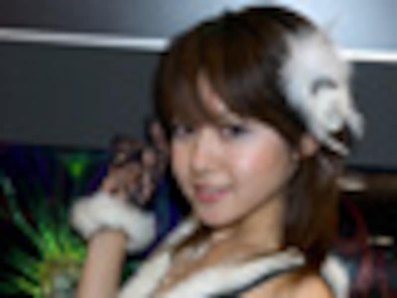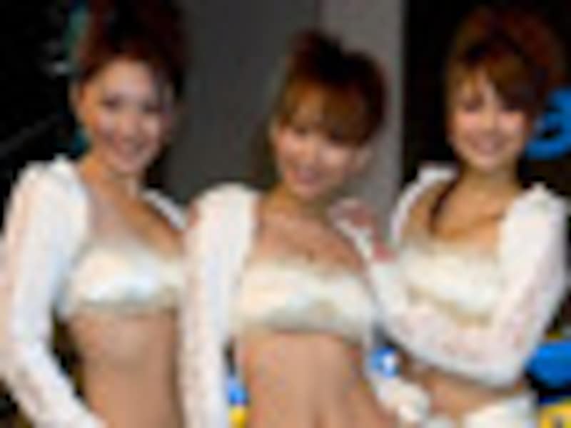 AIWA毎年、過激さナンバーワンのコスチュームで、多くのギャラリーを集める「AIWA」ブース。今年は一昨年のコスチュームを彷彿させる、両サイドがら開きの超セクシーコスチュームでした。 |