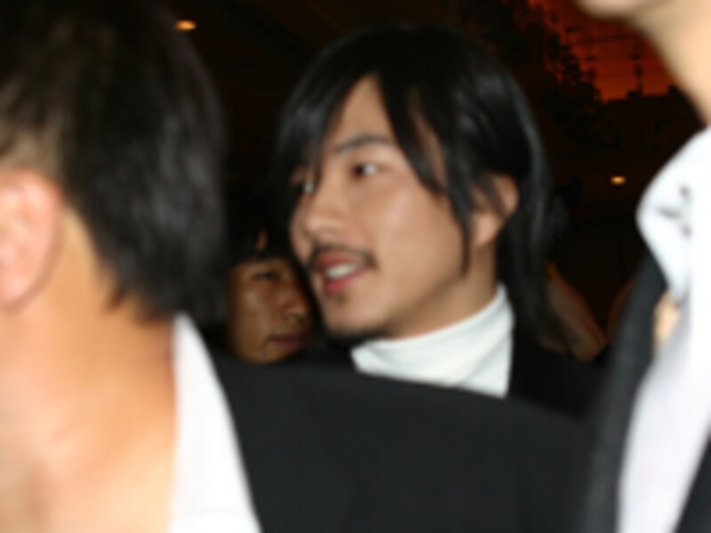 ステージでのあいさつの後、会場の一角で「キャー」という悲鳴のような声が。振り返ると、クォン・サンウとユ・ジテが立食パーティーの会場を周り、あいさつをしているではありませんか!そこにまた記者たちが押し寄せ、もみくちゃになりながらも、クォン・サンウは涼しい笑顔で会場を回っていたのでした。