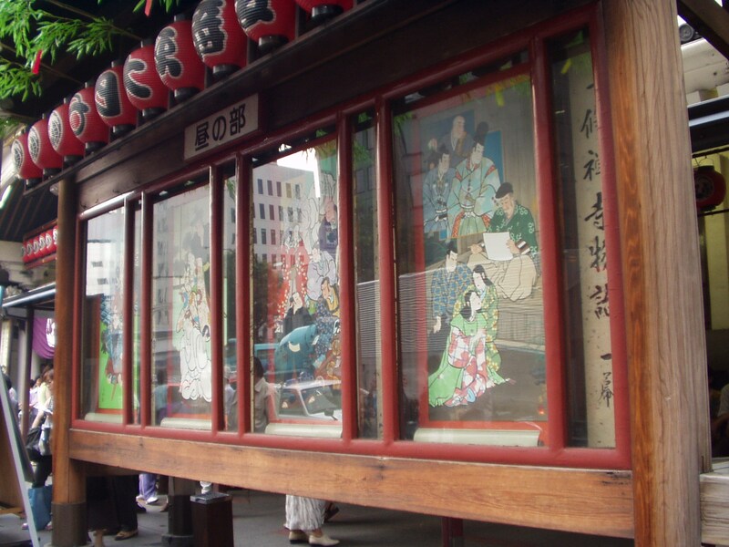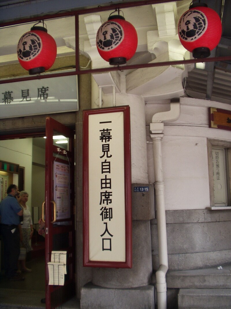 今回は東側寄り(舞台正面に向かって右側。いわゆる上手側)なので、花道はやや見えるが、前の人の頭がかぶればもうアウト。ここから花道の「七三」はちらほら、うまくいけば上半身が前の人の頭の間から見えるかな、というところ。揚幕までの役者の引っ込みは、もう見えないと諦めるしかない。