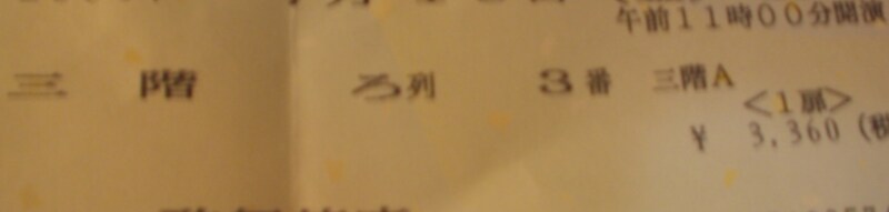 チケットを入り口でもぎってもらい、赤じゅうたん、赤階段を上がって、息が切れそうになったころ3階に到着。