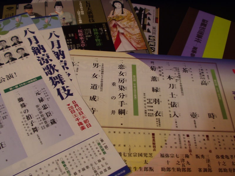 2度目の幕間には、1階の反対側に回り、何種類かのフリーのパンフやチラシを入手。歌舞伎座の公演予定はもちろん、歌舞伎役者の自主公演ものや、新橋演舞場など他の劇場の公演予定が分かる。玉三郎さんのDVDのチラシも。