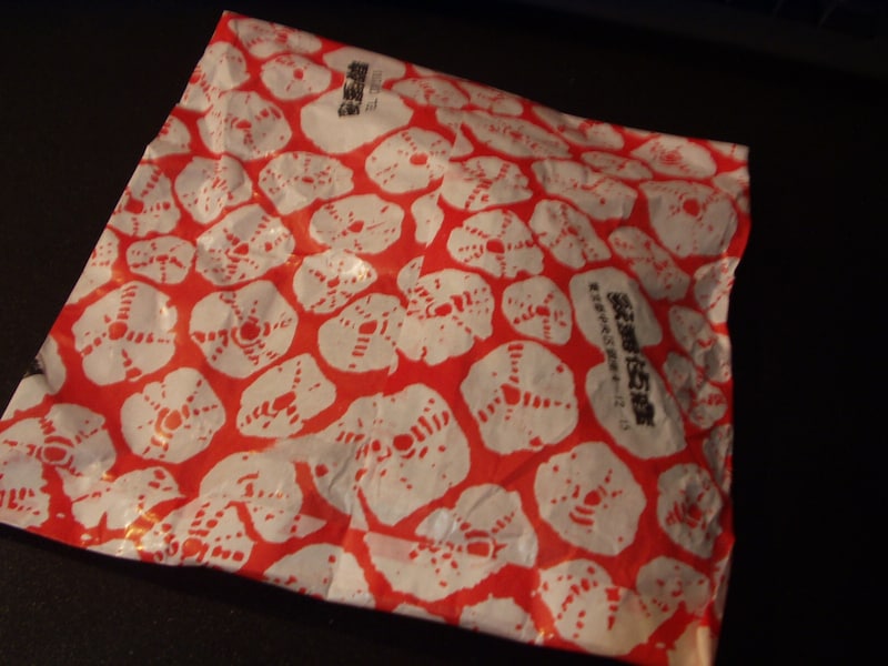 2階には甘味喫茶と和菓子のショップ。ここの豆菓子はおいしい。2種類購入。歌舞伎座でお土産を買うと、どこのショップでもこんな紙袋に入れてくれる。