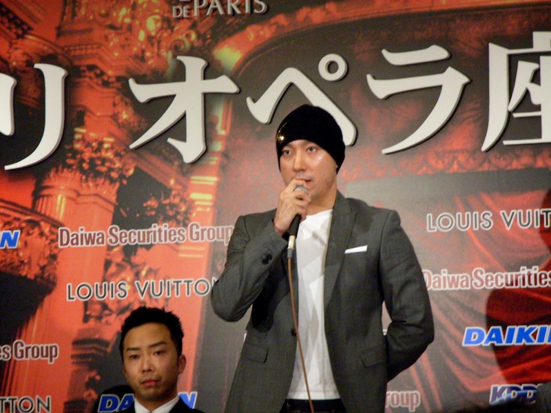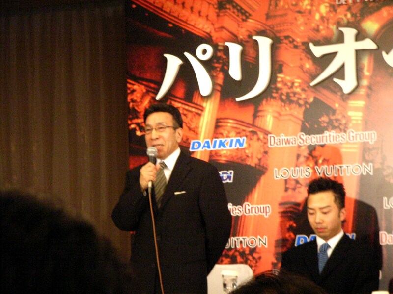 「このたびは世界屈指のオペラ座ガルニエで公演させていただくこと、非常に光栄で、私も加えていただいたことありがたく感謝しております。この上はフランスに日本の素晴らしい伝統芸術、演出の発想法、いろいろなジャンルがあると言うことをフランスの方々に喜んでいただければと思います。微力ながらつとめていきたいと思います」