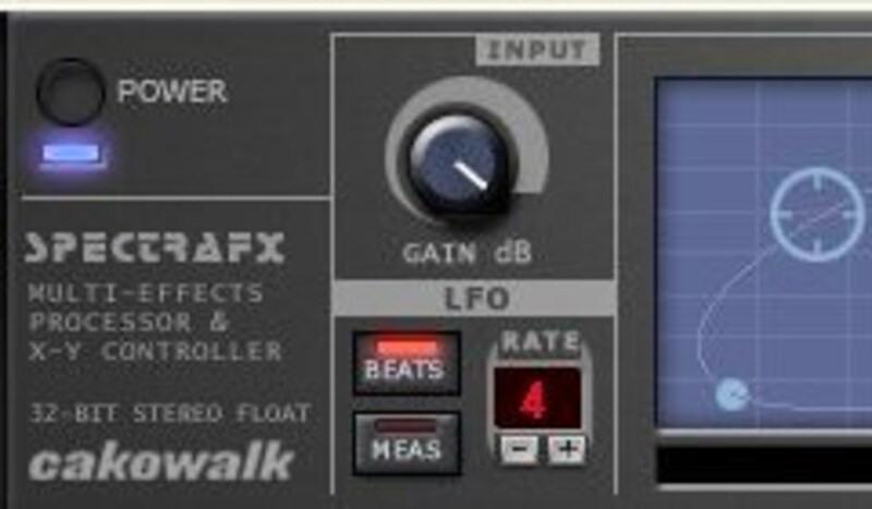 もうひとつ大きいのは空間系、歪み系などのエフェクトの組み合わせをあらかじめプリセットした、サウンド・メイキング用マルチエフェクト・プラグインCakewalk SpectraFXが入っていること。これもFX PadのようにX軸、Y軸という2つの組み合わせでパラメータを動かすことによって音を変化させることができ、そのパラメータの動きを自動化させてテンポに合わせたりすることも可能となっています。このDyad DXi SamplerおよびCakewalk SpectraFXはいずれもCakewalk Home Studio 2004 XLのみに収録されているソフトで、SONARユーザーも持っていないというちょっと面白い位置付けになっています。そのほかにはCakewalk Audio FX1、Cakewalk Audio FX2というプラグインエフェクトのパッケージの中からダイナミックスやコンプレッサ、アンプシミュレータ、テープシミュレータなど計8つが追加されており、この点ではSONAR 2と同じになっています。