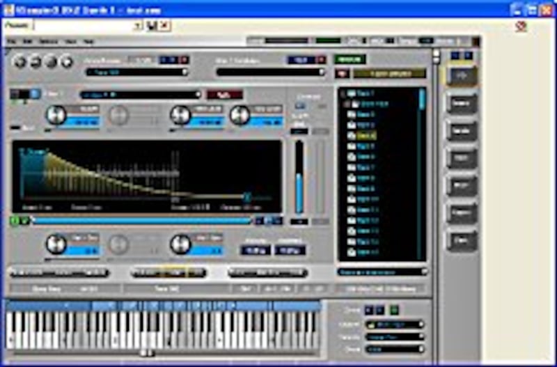 そして、Producer EditionにはもうひとつDXiとして非常に強力なソフトサンプラーがバンドルされています。VSampler 3.0 DXiというソフトで、非常に使い勝手の良いインターフェースと強力な編集機能を併せ持っています。実際起動させてみて、驚くのは、本当にさまざまなデータ形式をサポートしていること。SoundFontやAKAIのS1000/S2000/S5000/S6000といったフォーマットはもちろんのこと、DLSフォーマット、GigaSamplerフォーマット、HALionフォーマット、LM4ドラムキット、そしてWAVやAIFFと一般的なフォーマットはほとんどカバーしているのです。もちろん、サンプラーとしての機能も強力で、4基のLFOを装備するとともに4基のエンベロープジェネレータを装備。また、このサンプラー自体がステップシーケンサを装備していたり、ここにエフェクトを組み込むことができるなど、かなり自由度が高く高性能なものとなっているのです。ちなみに最大同時発音数は128音、16ステレオアウトが可能という仕様になっています。以上、SONAR3の概要について、主に新機能を中心に紹介してみましたが、いかがでしょうか?定価94,000円というのは、ちょっと安い買い物ではありませんが、それだけの機能・性能は持った製品にはなっているようです。なお、10月23日以降、SONAR 2を購入した人は無償アップグレードが可能とのことです(ただし、Studio Editionへのみで、Producer Editionへの無償アップグレードはありません)。またパッケージ製品であるSONAR Perfect SolutionとしてUA-1000モデル、SD-90モデルもそれぞれ発売される予定となっています。