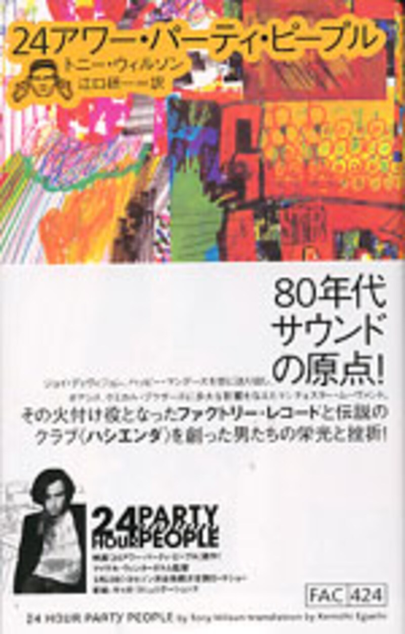 こちらは、オリジナルの英語版『24 Hour Party People: What the Sleeve Notes Never Tell You』です。表紙は、FAC 1の色違いデザインが使われています。 海外版としては既にヴィデオもリリースされています。日本盤DVD発売の予定もあるようです。