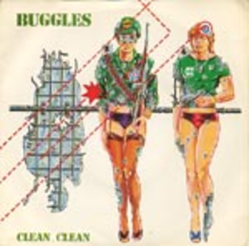 こちらは、シングル『Clean Clean』(1980年)。B面は、アルバムにボーナストラックとして収録の「Technopop」。下半身下着女でミリターリー調の変てこなメンバーのイラストですが、やっぱりトレヴァーはメガネ着用しています。