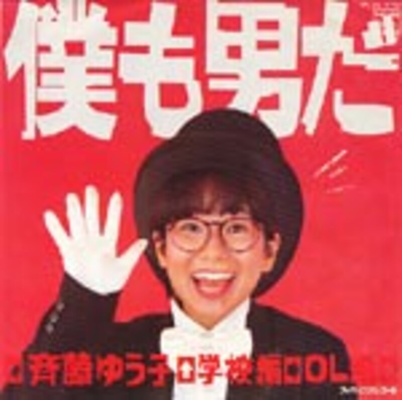 『笑っていいとも』に出ていたので全国区的知名度があると思われるうんこつんつんアラレちゃんのような超80年代的メガネキャラの斉藤ゆう子(後に斉藤祐子)ですが、読売TVの関西ローカル系の番組でよく見た覚えがあります。『僕も男だ(学校編)』(1983年)の作詞はコピーライター川崎徹、作曲編曲は岡田徹と、裏ライダース的テクノ歌謡になっています。『ムーンライダーズのイイ仕事/ユニバーサル編』(2001年)にも収録されています。最近は『おジャ魔女どれみ』『とっとこハム太郎』などで声優として活躍されているようです。