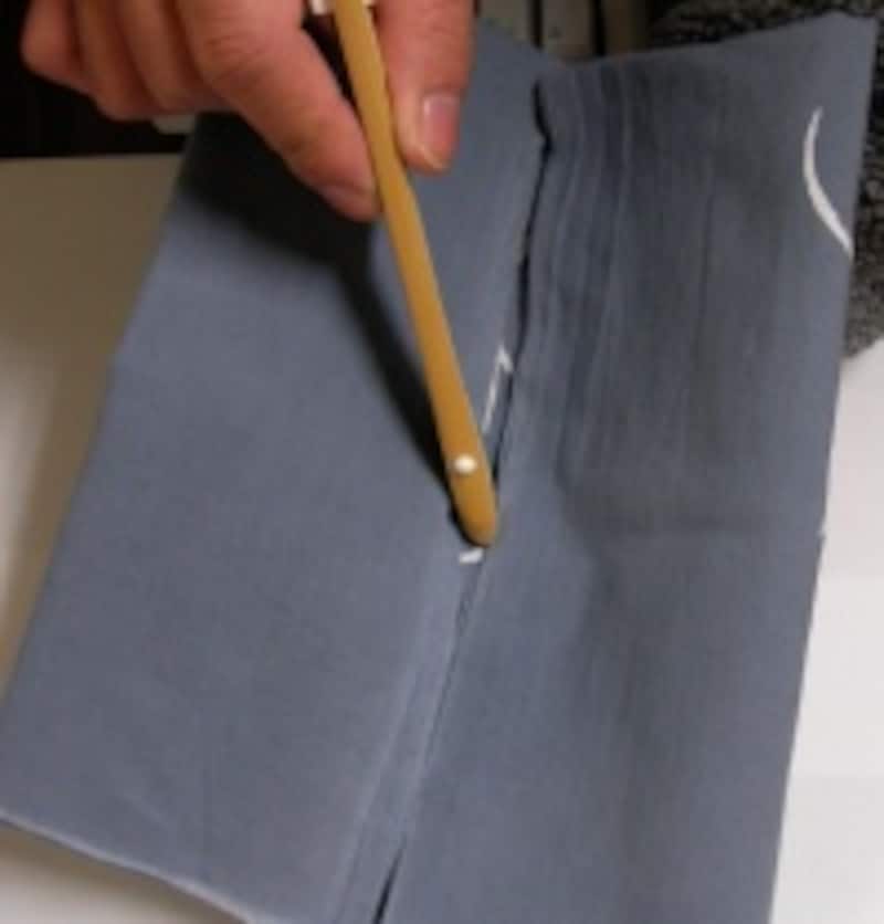 | 手紙を書くときは、写真のように、手ぬぐいを広げ、扇子を筆として見立てます |
